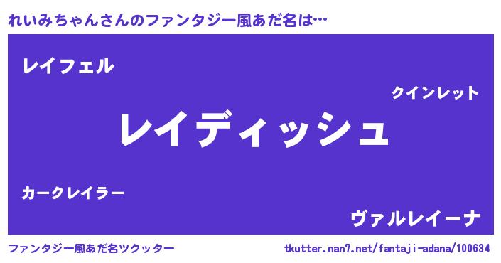 れいみちゃんさんのファンタジー風あだ名をツクッター!