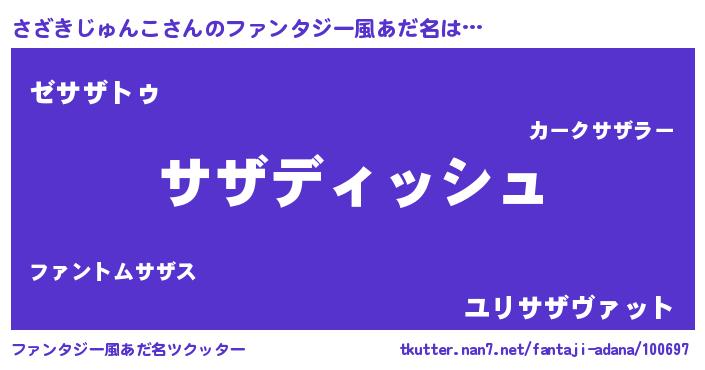 | 男性向けラノベタイトル風あだ名 | 『さざきじゅんこという概念が存在しない退屈な世界 』 |