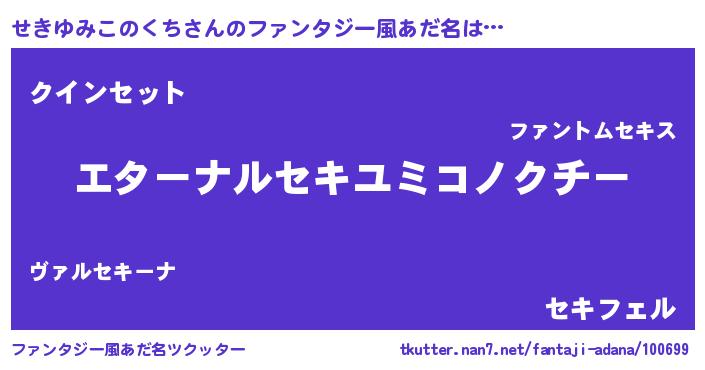 | 意味不明あだ名 | 『せきゆみこのくちフォーエバー』 |