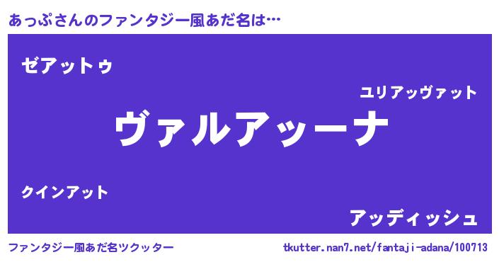 | 意味不明あだ名 | 『住所不定無職あっぷ(3歳)』『自称あっぷ』 |