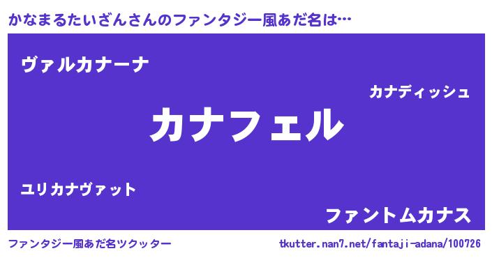 | 女子向けラノベタイトル風あだ名 | 『かなまるたいざん姫と円卓の騎士』 |