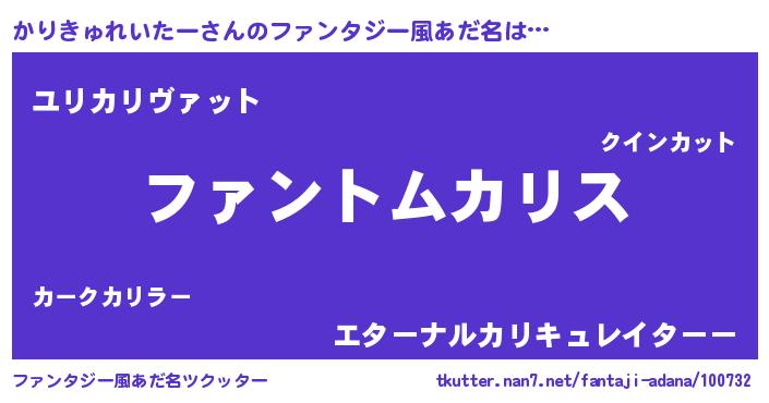 | 意味不明あだ名 | 『とにかく怪しいかりきゅれいたー』 |