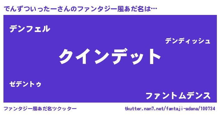 | 欧米人風あだ名 | 『アンジェラ・でんずついったー』 |