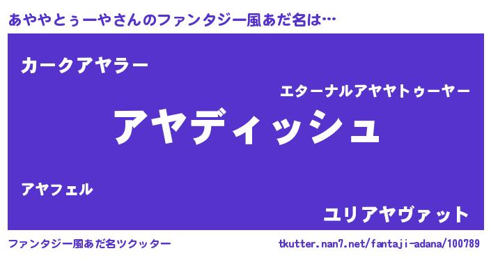 | ヒーロー風カッコイイあだ名 | 『ネオアヤヤトゥーヤ』『幻影騎士アヤ』 |