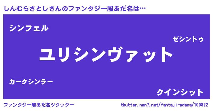 | 男性向けラノベタイトル風あだ名 | 『転生したらしんむらさとしだった件』 |