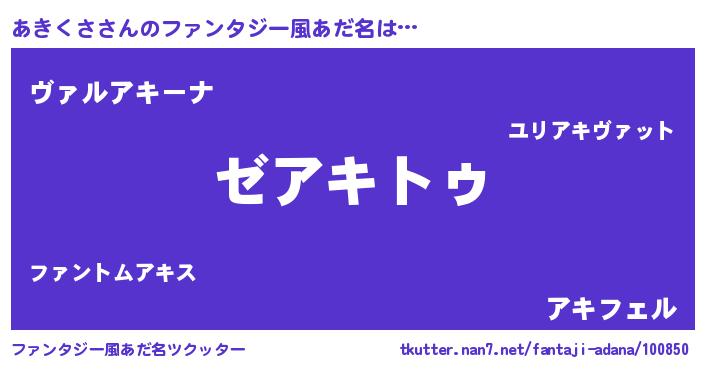 | 男性向けラノベタイトル風あだ名 | 『魔法科高校のあきくさ』 |