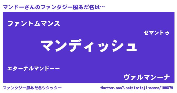 | 男性向けラノベタイトル風あだ名 | 『マンドーという概念が存在しない退屈な世界 』 |