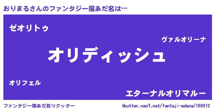 | ヒーロー風カッコイイあだ名 | 『ネオオリマル』『究極戦士オリマル』 |