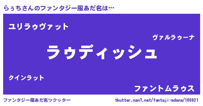 | 女子向けラノベタイトル風あだ名 | 『らぅちの契約王妃』 |