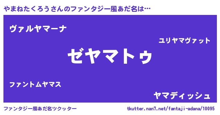 やまねたくろうさんのファンタジー風あだ名をツクッター!