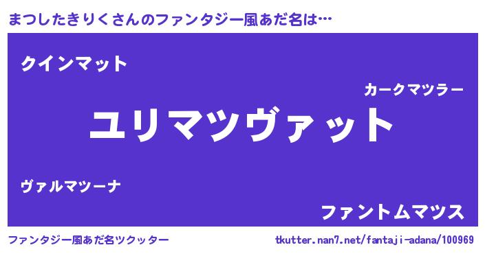 | 男性向けラノベタイトル風あだ名 | 『マツシタキリクスレイヤー』 |