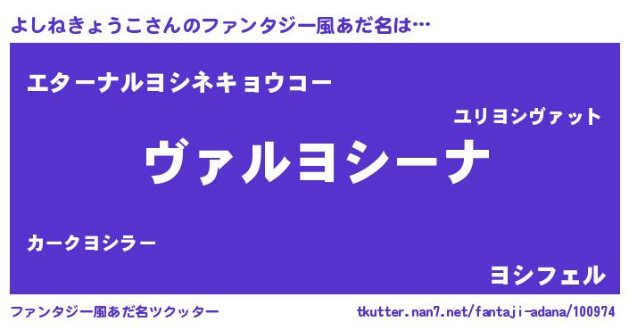 | 男性向けラノベタイトル風あだ名 | 『魔弾の王とよしねきょうこ』 |