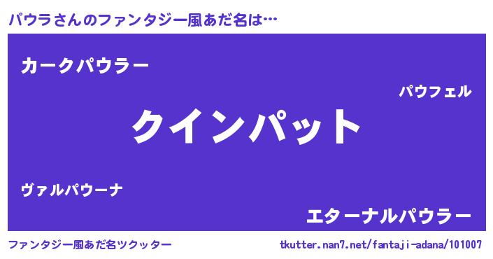 | 男性向けラノベタイトル風あだ名 | 『ノーゲーム・ノーパウラ』 |