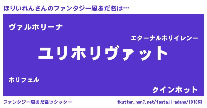 | 男性向けラノベタイトル風あだ名 | 『転生したらほりいれんだった件』 |