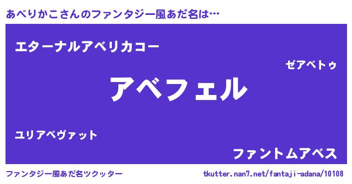 | ヒーロー風カッコイイあだ名 | 『スーパーアベリカコ』『天弓騎士アベ』 |