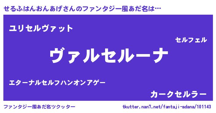 | 女子向けラノベタイトル風あだ名 | 『せるふはんおんあげが死なない童話 林檎のせるふはんおんあげの診療簿』 |