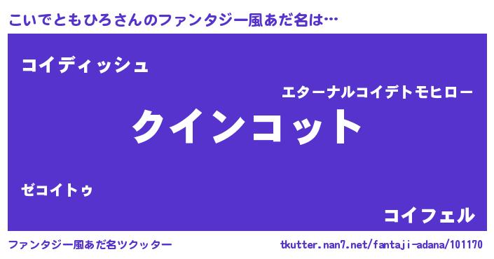| ヘコむあだ名 | 『こいでともひろ(笑)』『こいっふぃ~』 |