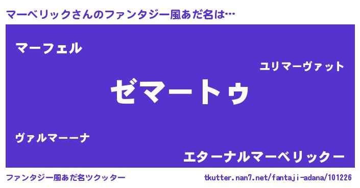 | 女子向けラノベタイトル風あだ名 | 『マーベリックアンティーク』 |