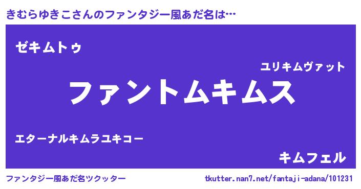 ポケモン風あだ名 | 『ヒキムラユキコ』『キムセウス』 |