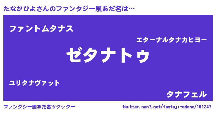 | ポケモン風あだ名 | 『タナゴンZ』『タナセウス』 |