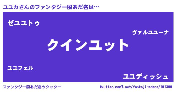 | ヒーロー風カッコイイあだ名 | 『友情の使者ユユカ』『超時空戦士ユユカ』 |
