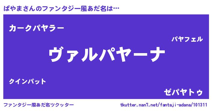 | 料理風あだ名 | 『ぱやまのカルパッチョ風』 |