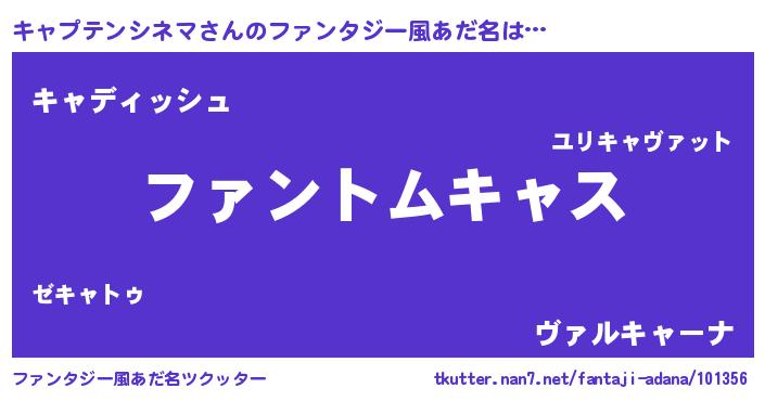 | 女子向けラノベタイトル風あだ名 | 『キャプテンシネマの卵を拾いまして』 |