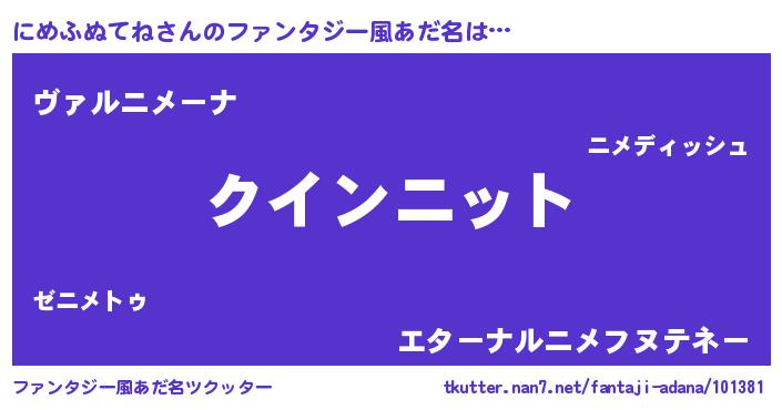 | 女子向けラノベタイトル風あだ名 | 『にめふぬてね恋絵巻』 |