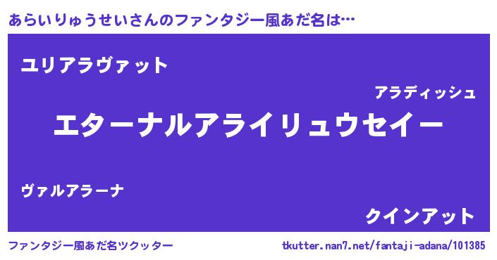 | 男性向けラノベタイトル風あだ名 | 『はたらくあらいりゅうせいさま!』 |