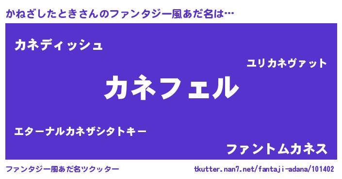 | 男性向けラノベタイトル風あだ名 | 『カネザシタトキアートオンライン』 |