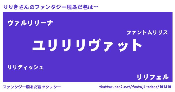 | 男性向けラノベタイトル風あだ名 | 『りりき~年齢イコール彼女いない歴の魔法使い~』 |