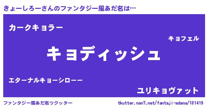 | 男性向けラノベタイトル風あだ名 | 『きょーしろーという概念が存在しない退屈な世界 』 |
