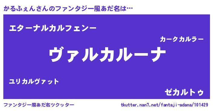 | 女子向けラノベタイトル風あだ名 | 『乙女ゲームの破滅フラグしかない悪役かるふぇんに転生してしまった…』 |