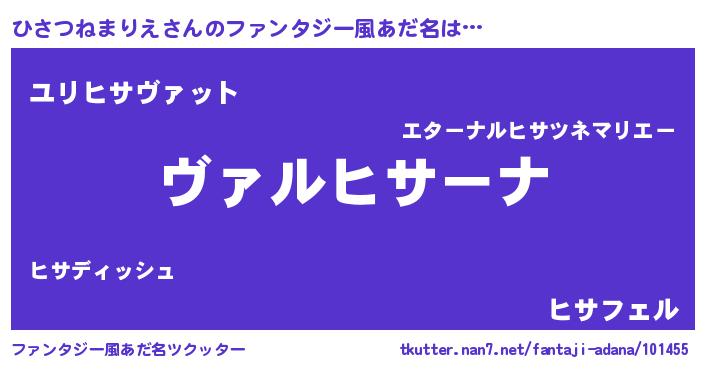 | 男性向けラノベタイトル風あだ名 | 『はたらくひさつねまりえさま!』 |