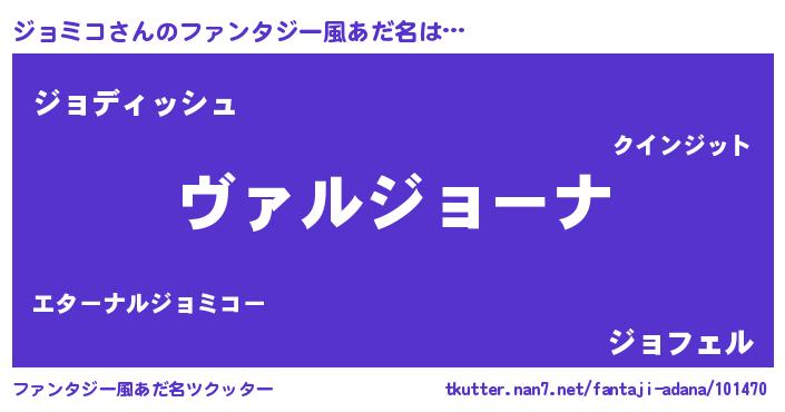 | 男性向けラノベタイトル風あだ名 | 『この素晴らしい世界にジョミコを!』 |
