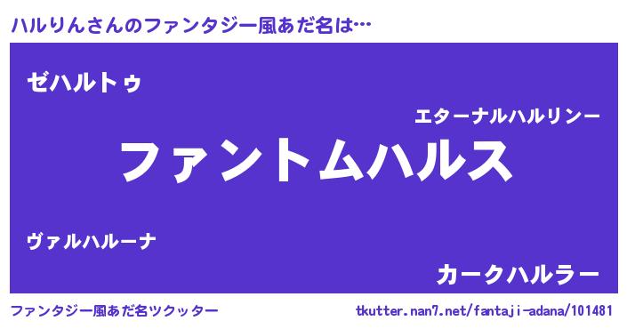 | 男性向けラノベタイトル風あだ名 | 『ハルりんの嫁は女の子じゃないと思った?』 |