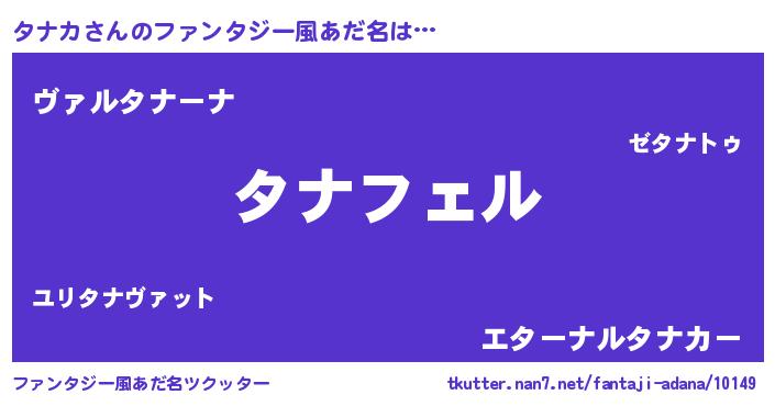 | 男性向けラノベタイトル風あだ名 | 『タナカの憂鬱』『魔弾の王とタナカ』 |