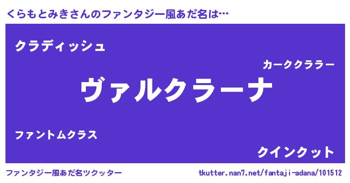 | 男性向けラノベタイトル風あだ名 | 『この素晴らしい世界にくらもとみきを!』 |