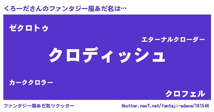 | ヒーロー風カッコイイあだ名 | 『ネオクローダ』『超時空戦士クローダ』 |