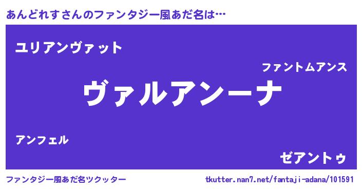| 男性向けラノベタイトル風あだ名 | 『魔弾の王とあんどれす』 |