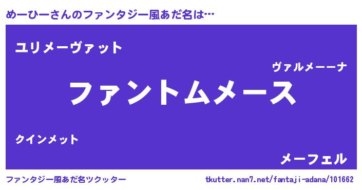 | 男性向けラノベタイトル風あだ名 | 『めーひーの嫁は女の子じゃないと思った?』 |