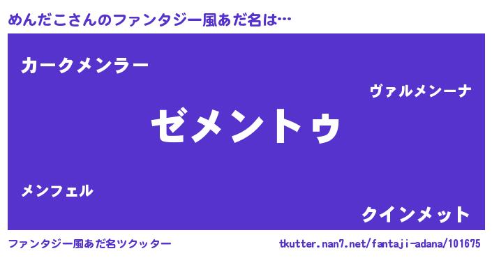 | 意味不明あだ名 | 『自称めんだこ』『ペロリンめんだこ』 |