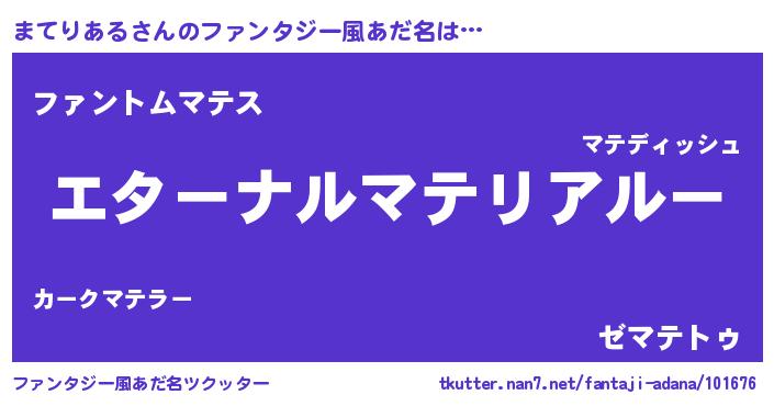 | ポケモン風あだ名 | 『マテリダネ』『ヒマテリアル』 |