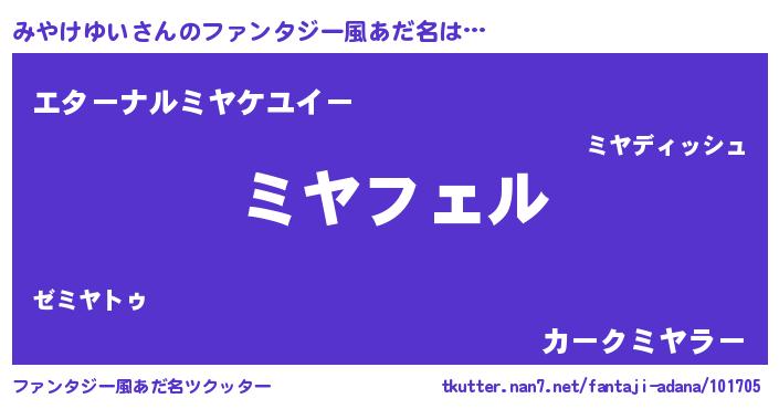 | ポケモン風あだ名 | 『ミヤチュウ』『ミヤケダネ』 |