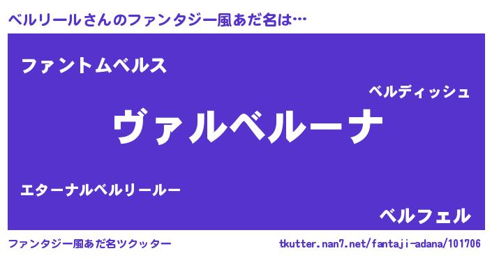 | 意味不明あだ名 | 『住所不定無職ベルリール(79歳)』 |