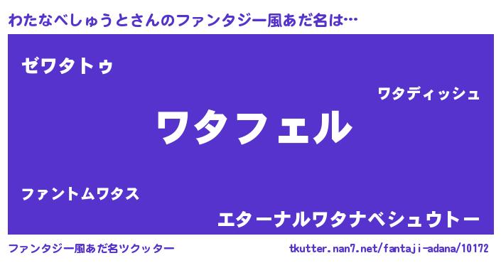 | 男性向けラノベタイトル風あだ名 | 『ワタナベシュウトアートオンライン』 |