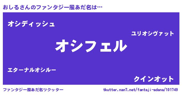 | ヘコむあだ名 | 『おしにー』『おしる(遠い目)』 |