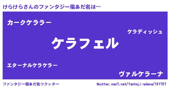 | ヒーロー風カッコイイあだ名 | 『スーパーケラケラ』『仮面ケラダー』 |