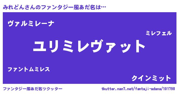| ヒーロー風カッコイイあだ名 | 『仮面ミレダー』『天空の使者みれどん』 |