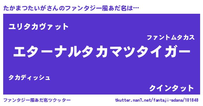 | 伝説のあだ名 | 『秘められし陰陽師たかまつたいが』 |